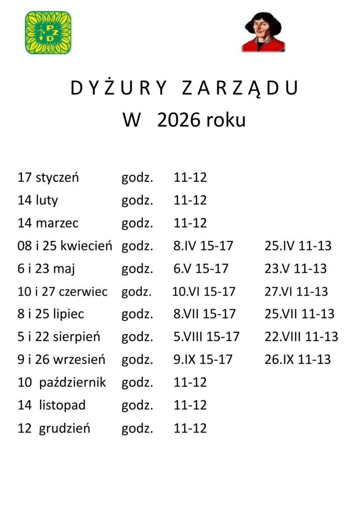 DYŻURY ZARZĄDU ROD „im. Mikołaja Kopernika” w 2026r.